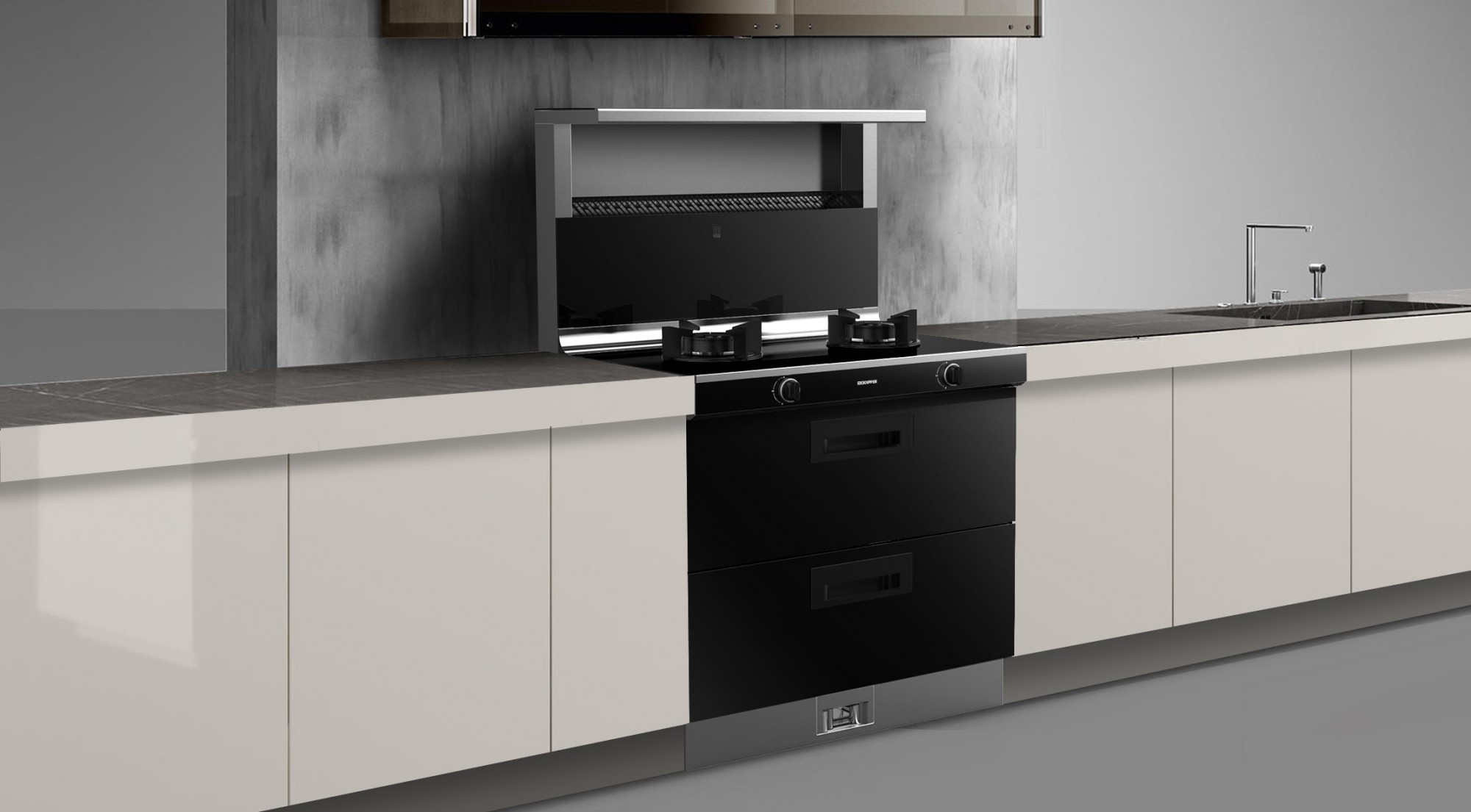 北斗星C2采用三合一設計,吸油煙機+燃氣灶+消毒柜,將置物、吸煙、烹飪、消毒、換氣等功能完美融為一體,有效節約廚房空間。