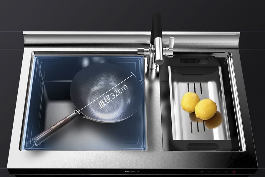 北斗星S3融合了“單雙槽”的優點,同時規避兩者的缺點。其配備的是57L大手工槽,擁有更大的操作空間,可將32cm中式炒鍋直接放平清洗,而且清洗時不容易被濺水。不僅如此,左右雙槽設計,還可以左右同時開弓,切配、清洗、瀝干輕松搞定,大大提高下廚效率!很適合兩個人一起干活,效果更高,洗鍋洗菜兩不耽誤!