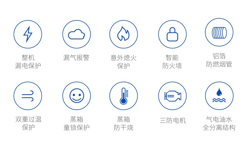 北斗星一直將用戶安全放在首位,為了保證機器安全運行,設(shè)置了十重安全保護:包括智能防火墻、漏氣報警、意外熄火保護、氣電油水全分離結(jié)構(gòu)、蒸箱防干燒、蒸箱童鎖保護、三防電機、鋁箔防燃煙管、雙重過溫保護、整機漏電保護。這十重保護時刻保證機器穩(wěn)定運行,讓用戶安心又放心!