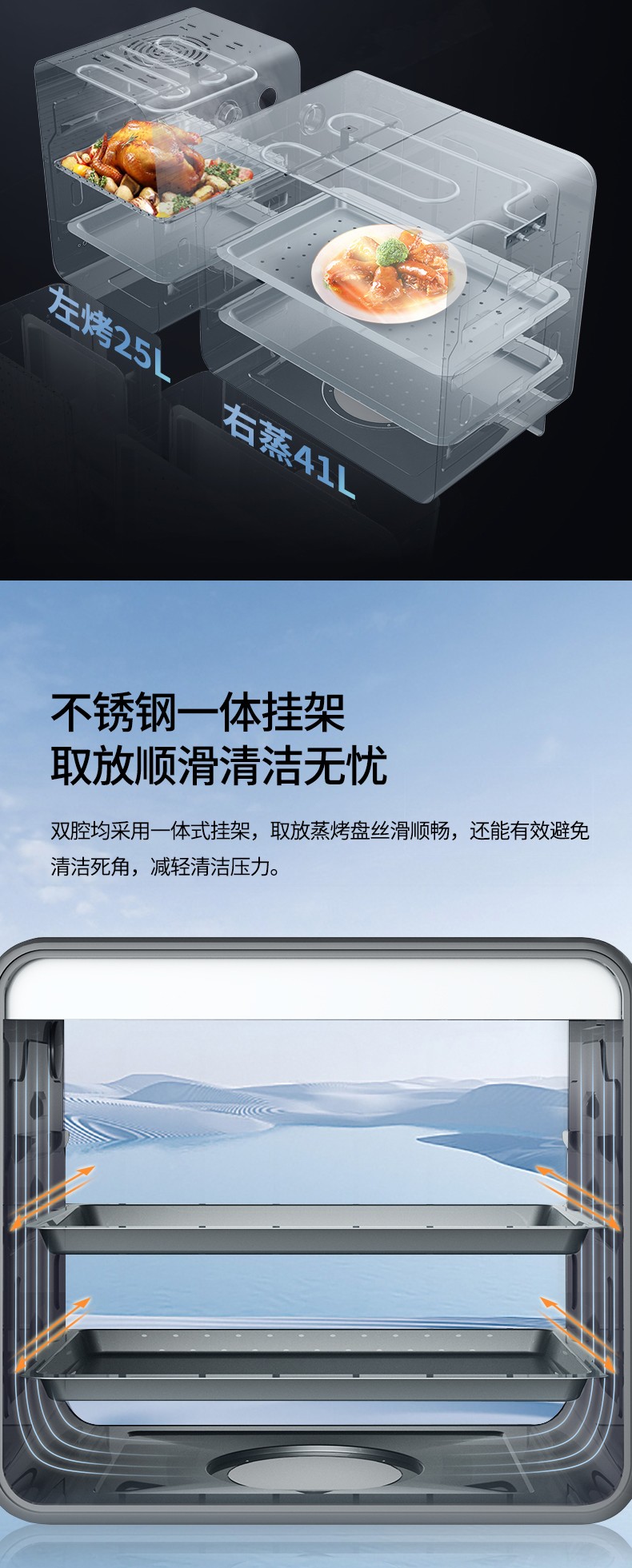 41+25L蒸烤雙腔,一體掛架更便捷