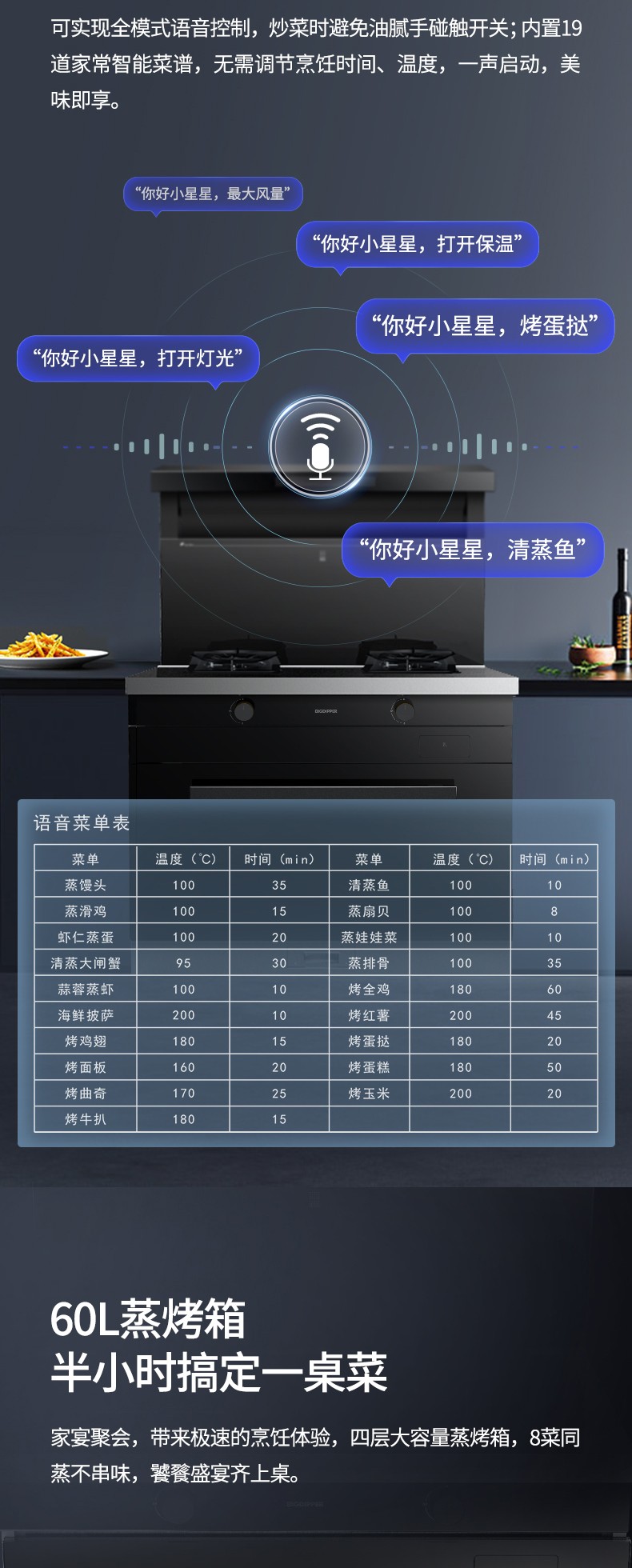 60L蒸烤內(nèi)膽,一聲令下美味到家