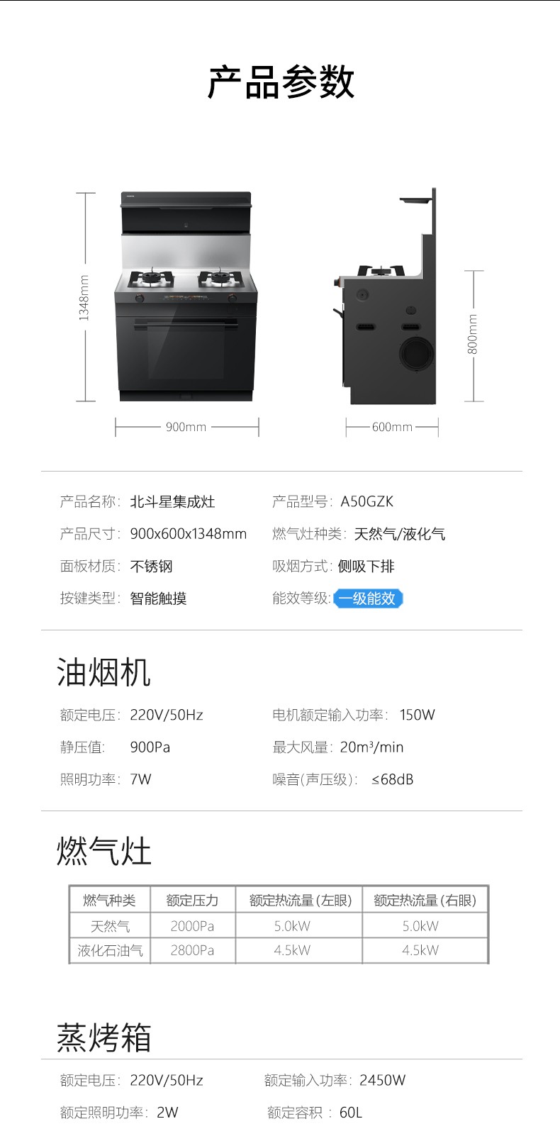 5.0kW爆炒火力,國標一級能效