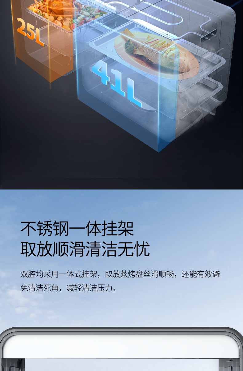 41+25L蒸烤雙腔,一體掛架更便捷